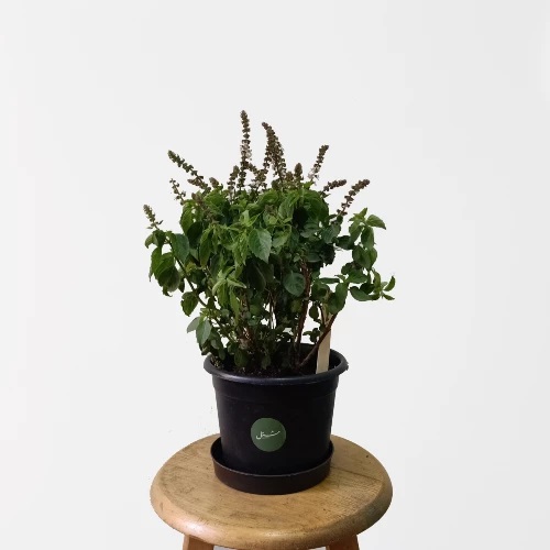 Ocimum Basilicum is a herb. The leaves are its edible part, used in salads and pizza, as for the flowers they are aesthetically pleasing.